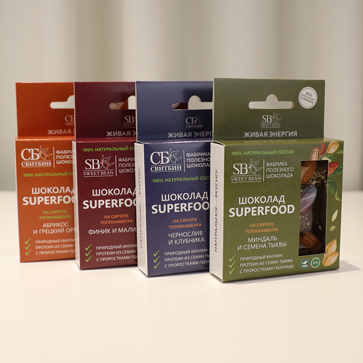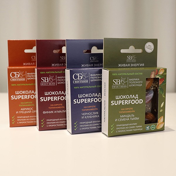 Шоколад для здорового питания изготовлен из натуральных ингредиентов без добавления сахара. Сироп топинамбура, источник природного инулина, рекомендован, как общеукрепляющее средство, положительно влияющее на работоспособность, переносимость физических и умственных нагрузок. Витграсс (проростки пшеницы) полезен для нормального пищеварения и относится к суперфудам.
